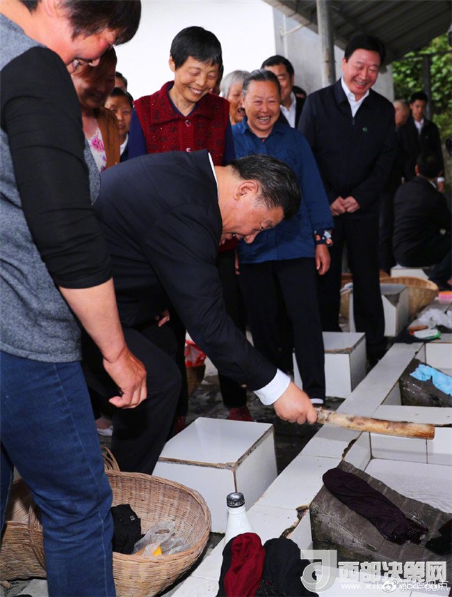 正在村里洗衣服的幾位村民告訴總書記,過去是在江邊洗衣服,現在村里建起了便民洗衣池,用上了自來水,污水集中處理,既尊重了生活習慣又很環(huán)保。總書記接過洗衣用的棒槌,俯下身,試著捶打了幾下衣服,說:現在洗衣服也是綠色環(huán)保的了。習近平說,看見大家日子過得好,我高興!