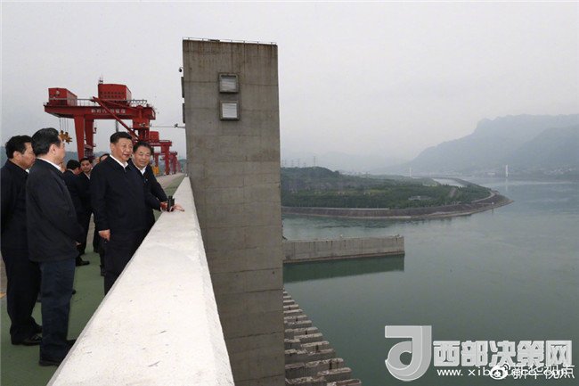 離開許家沖村,習近平來到三峽大壩,登上壩頂,極目遠眺長江上下游,詳細了解三峽工程建設、發(fā)電、水利、通航、生態(tài)保護等方面的情況。隨后,前往通航船閘、升船機和左岸發(fā)電廠實地調研?! ?#8203;