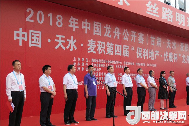 9時整,2018中國龍舟公開賽(天水麥積站)暨保利地產“伏羲杯”第四季龍舟大賽正式拉開序幕,來自全國及甘肅省的近25家代表隊展開激烈角逐。中國龍舟協(xié)會副主席劉北劍,天水市人大常委會主任、市委秘書長蔣曉強,天水市人大常委會原主任、市關工委主任李世榮,市委常委、常務副市長趙四輩,市委常委、宣傳部部長張建杰,市人大常委會副主任張克強,副市長、市公安局局長馬瑛,市政協(xié)副主席屈光平,市政協(xié)副主席、麥積區(qū)委書記張智明,國家體育總局社會體育指導中心二部主任、國際龍舟協(xié)會副秘書長、亞洲和中國龍舟協(xié)會秘書長余漢橋,省體育局群眾體育處處長武志峰,市人大常委會秘書長楊坤,市政府副秘書長、外事僑務辦主任張有信,麥積區(qū)人大常委會主任賈應珍等出席開幕式,并為龍舟點睛。