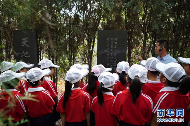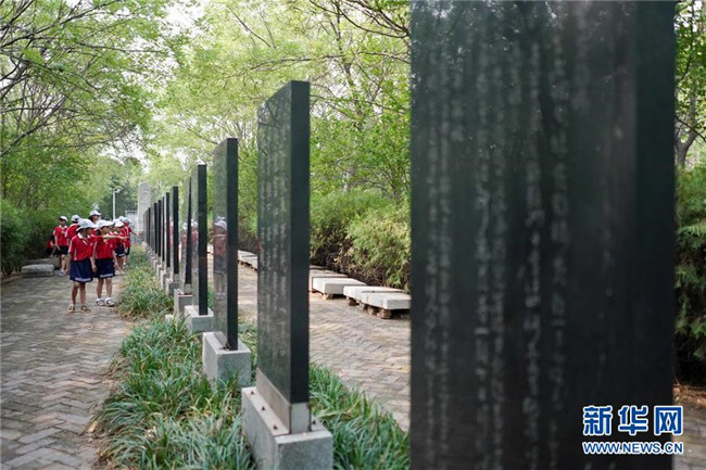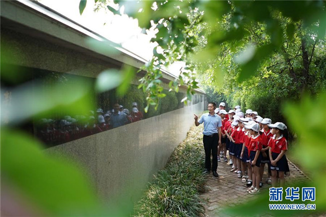 當(dāng)日,河北省邢臺市巨鹿縣育新小學(xué)組織學(xué)生前往位于該縣縣城的邢臺市愛國主義教育基地——愛華翰苑碑林,聽講解員講解碑上鐫刻的熱愛祖國、熱愛家鄉(xiāng)等歷代名言警句,過一個有意義的暑假。 新華社記者 牟宇 攝