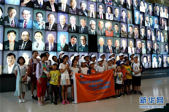 8月21日,觀眾在上??茖W(xué)會(huì)堂的院士墻前留影。