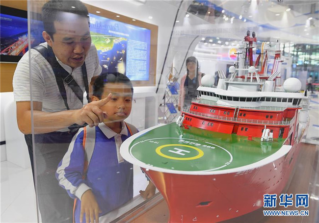 這是10月15日拍攝的2019中國海洋經(jīng)濟(jì)博覽會(huì)現(xiàn)場。 當(dāng)日,2019中國海洋經(jīng)濟(jì)博覽會(huì)在深圳開幕,大批海洋“大國重器”及高新技術(shù)研發(fā)成果亮相。 中國海洋經(jīng)濟(jì)博覽會(huì)被譽(yù)為“中國海洋第一展”。2019中國海洋經(jīng)濟(jì)博覽會(huì)以“藍(lán)色機(jī)遇、共創(chuàng)未來”為主題,吸引450余家企業(yè)和機(jī)構(gòu)參展,將重點(diǎn)圍繞現(xiàn)代港口建設(shè)、海洋高新技術(shù)與裝備制造、海洋可再生能源利用、海水淡化與綜合利用等熱點(diǎn)領(lǐng)域,推出新技術(shù)成果,推進(jìn)中外企業(yè)洽談合作。 新華社記者毛思倩攝