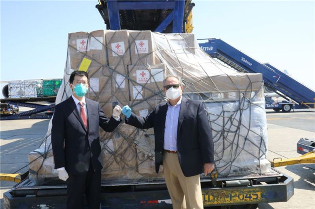 4月26日,中國(guó)政府援秘抗疫物資交接儀式在秘魯舉行。圖片來(lái)源:中國(guó)駐秘魯大使館網(wǎng)站