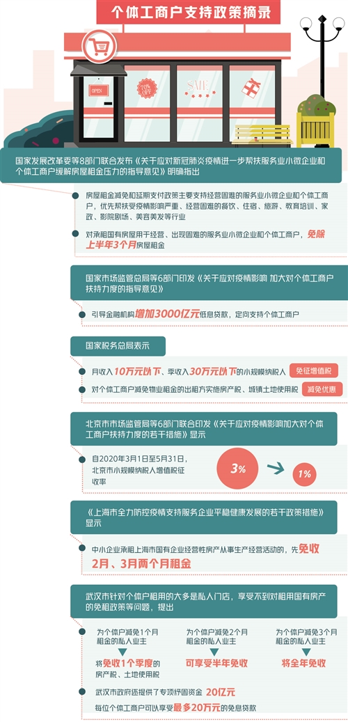 顯而易見,房租是個體工商戶最大的成本。黨中央、國務(wù)院一直高度關(guān)注中小微企業(yè)、個體戶的房租減免問題,并作出多次部署。早在疫情暴發(fā)初期,市場監(jiān)管總局等六部門出臺的《關(guān)于應(yīng)對疫情影響 加大對個體工商戶扶持力度的指導(dǎo)意見》就提出鼓勵各地結(jié)合實(shí)際減免個體工商戶房租。