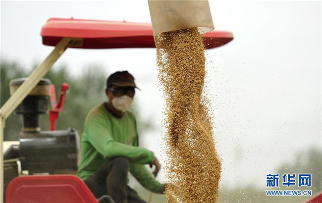 6月21日,河北省河間市景和鎮(zhèn)豐爾莊村農民在麥田收獲小麥。 新華社記者 朱旭東 攝