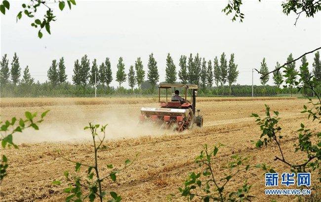 時下,河北省各地農民抓住有利時機,在搶收小麥的同時播種玉米,確保不誤農時。