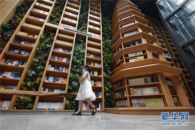 7月5日,在河北省定州市新華書(shū)店,一名小朋友從書(shū)架前走過(guò)。 新華社記者 朱旭東 攝