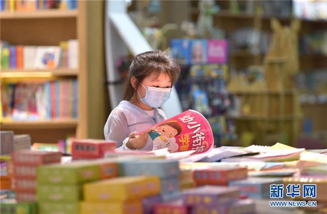 7月5日,一名小朋友在河北省定州市新華書(shū)店挑選圖書(shū)。新華社記者 朱旭東 攝