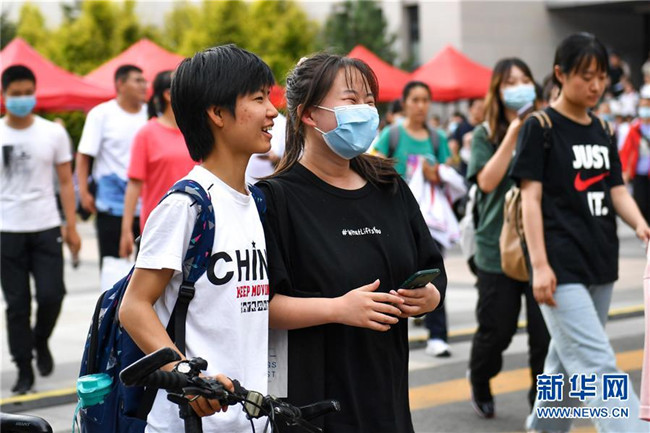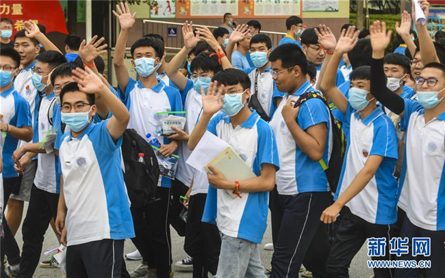 7月8日,在河南省鄭州市回民中學(xué)考點(diǎn),考生走出考場(chǎng)。 當(dāng)日,全國(guó)部分地區(qū)2020年高考結(jié)束。 新華社記者 郝源 攝