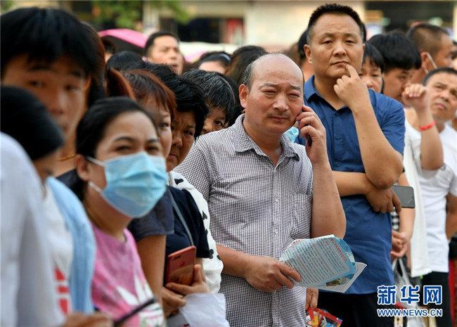7月8日,在河南省寶豐縣第一高級(jí)中學(xué)考點(diǎn),家長(zhǎng)在考場(chǎng)外等候考生。 當(dāng)日,全國(guó)部分地區(qū)2020年高考結(jié)束。 新華社記者 李嘉南 攝