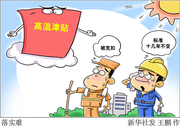 一些地方高溫津貼多年不上調(diào)成為勞動者反映較為突出的問題。例如,湖南省2005年規(guī)定,高溫津貼標(biāo)準(zhǔn)為每人最低每月150元,這一標(biāo)準(zhǔn)已有十多年未調(diào)整。河南、廣東等地的高溫津貼標(biāo)準(zhǔn)也都十來年沒有調(diào)整過。