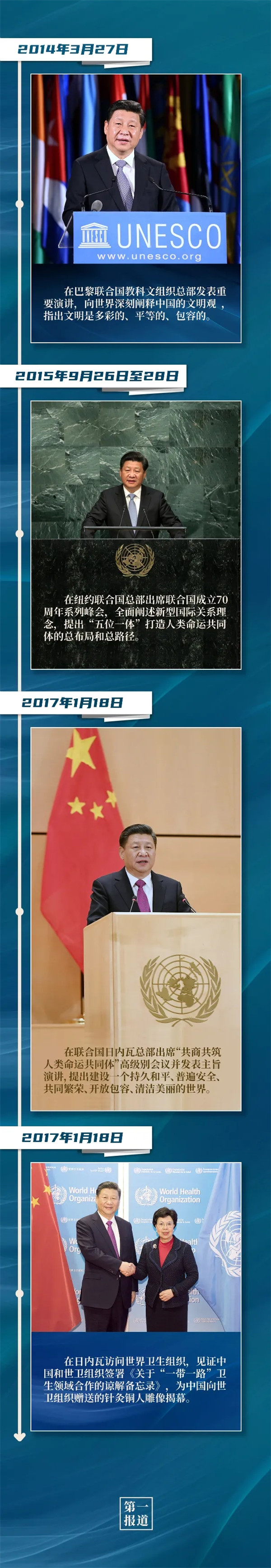紐約聯(lián)合國總部、聯(lián)合國日內(nèi)瓦總部、聯(lián)合國教科文組織總部、世界衛(wèi)生組織,這些地方都留下了習(xí)主席的訪問足跡。站在聯(lián)合國講臺,習(xí)主席闡述關(guān)于促進世界和平發(fā)展的重要主張,表達對聯(lián)合國事業(yè)的堅定支持,傳遞攜手各方應(yīng)對全球挑戰(zhàn)、深化多邊合作的真誠意愿。