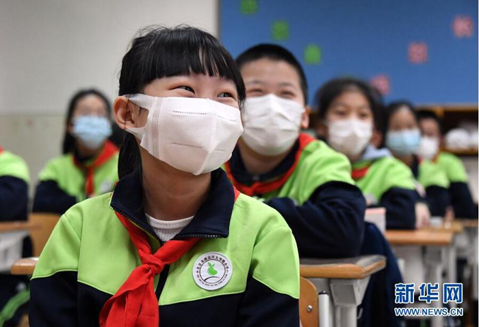 3月1日,北京市海淀區(qū)太平路小學(xué)的學(xué)生們?cè)谏?ldquo;開(kāi)學(xué)第一課”。新華社記者 任超 攝