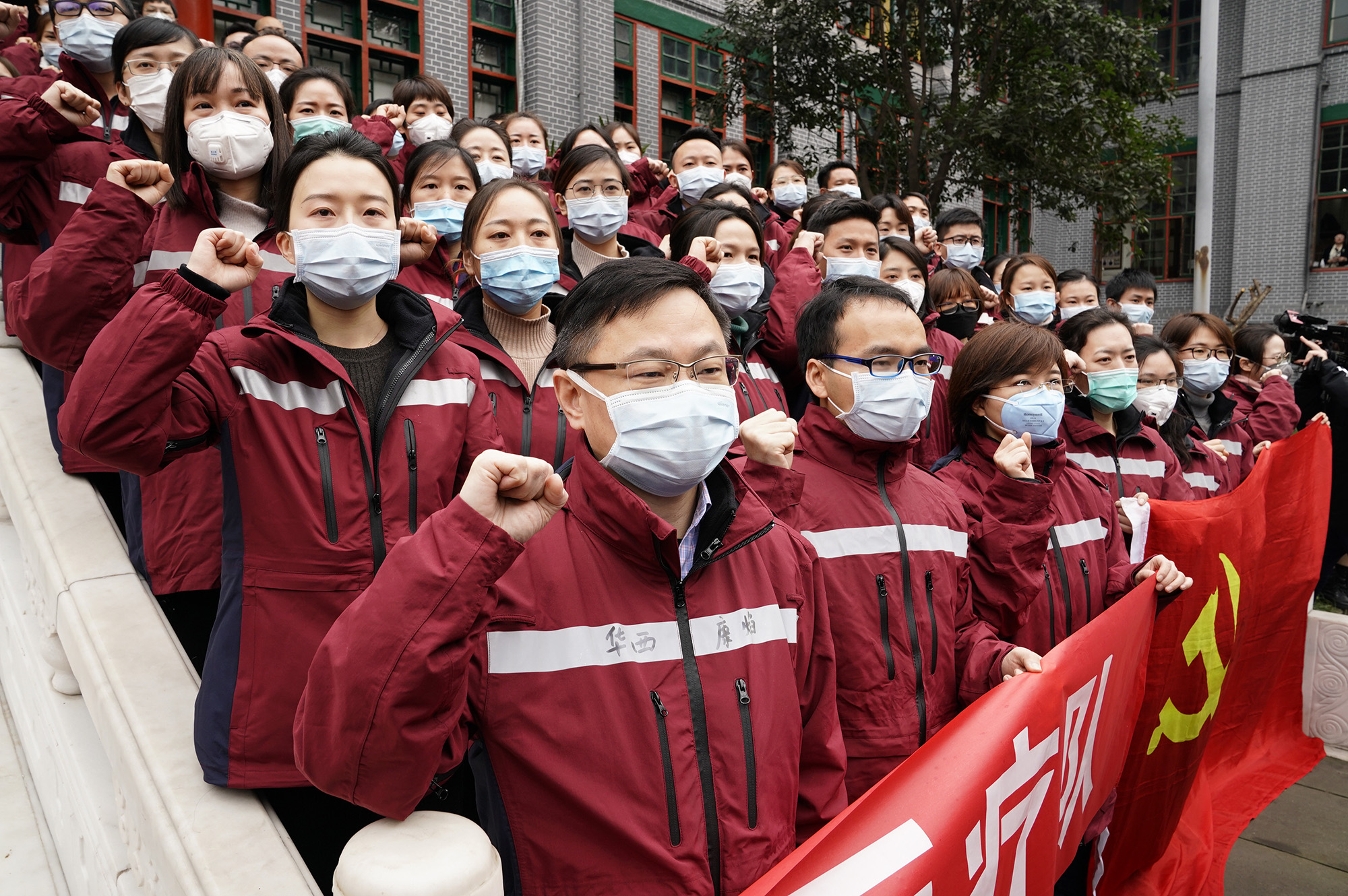↑2020年2月7日,四川大學華西醫(yī)院派出131名隊員奔赴武漢支援。