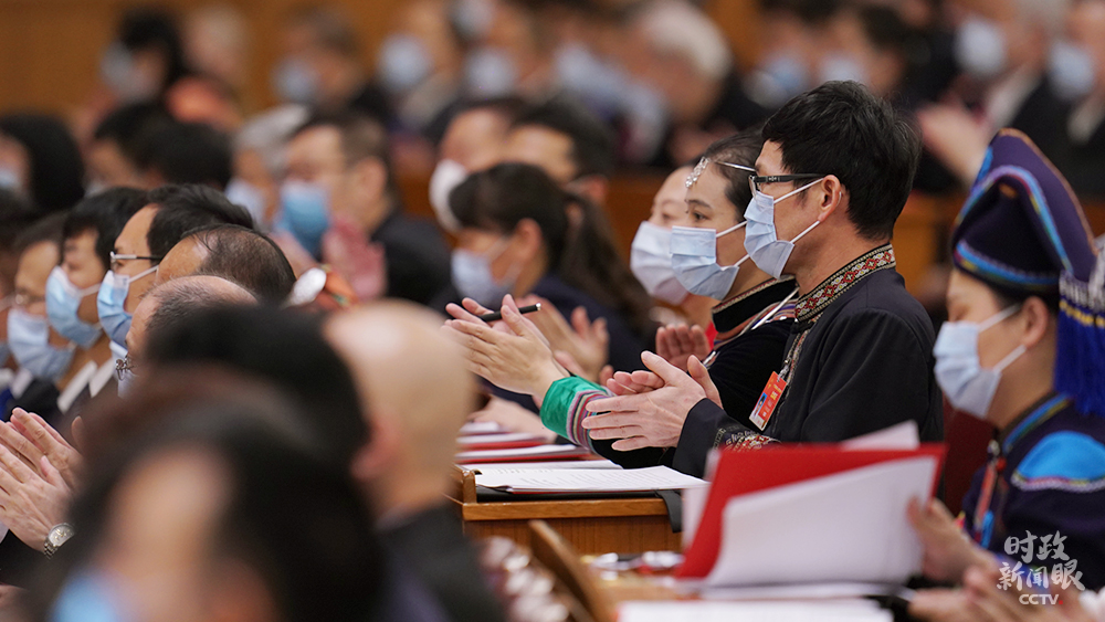 △閉幕會(huì)上,每項(xiàng)決議草案和決定草案表決通過后,現(xiàn)場都會(huì)響起熱烈掌聲。(總臺(tái)國廣記者李晉拍攝)
