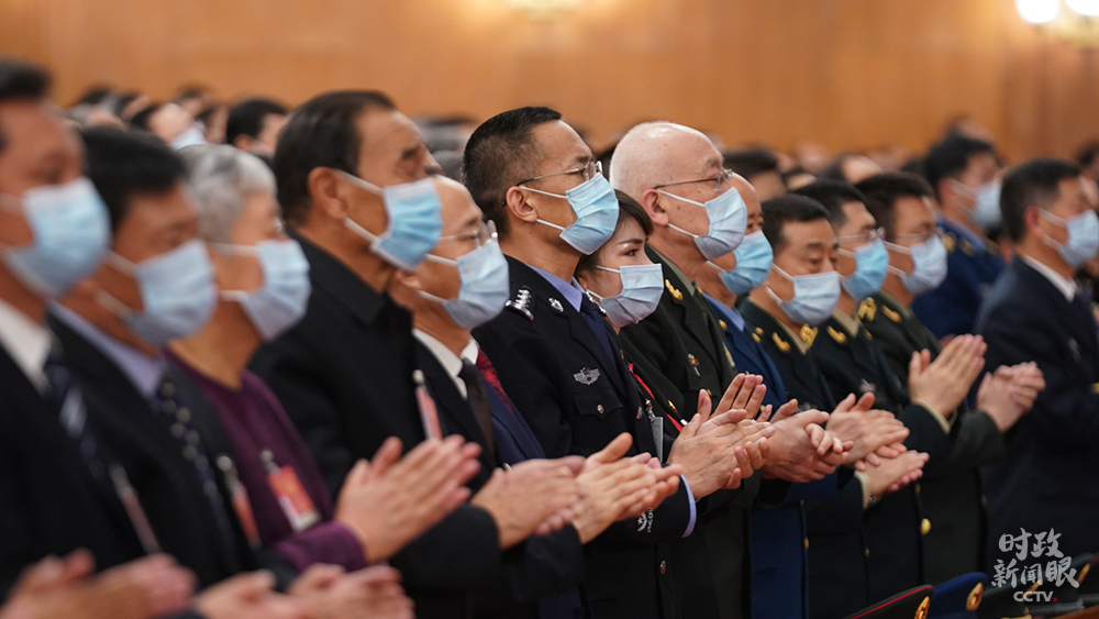 △閉幕會(huì)上,習(xí)近平等黨和國家領(lǐng)導(dǎo)人步入會(huì)場時(shí),全場起立鼓掌。(總臺(tái)國廣記者李晉拍攝)