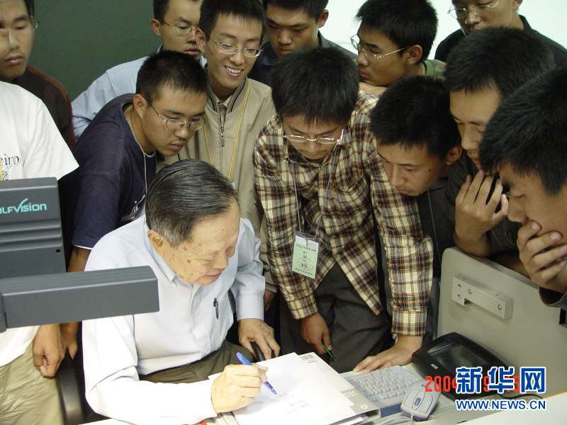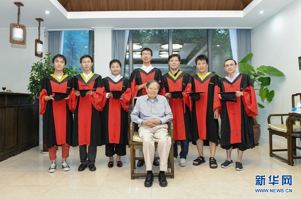 楊振寧先生與博士生在清華大學合影。(新華社發(fā))