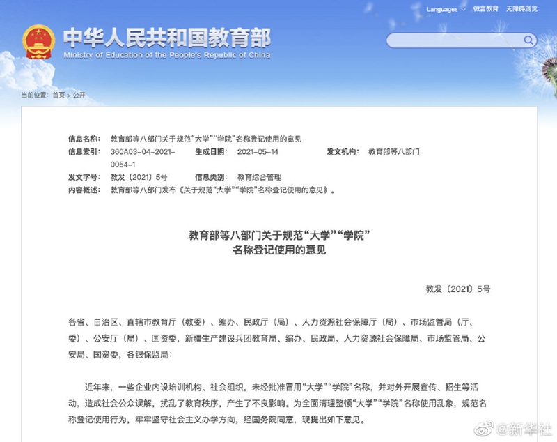 教育部說(shuō)大學(xué)學(xué)院名稱(chēng)將不能亂用