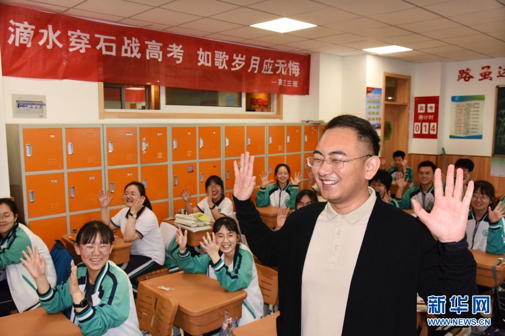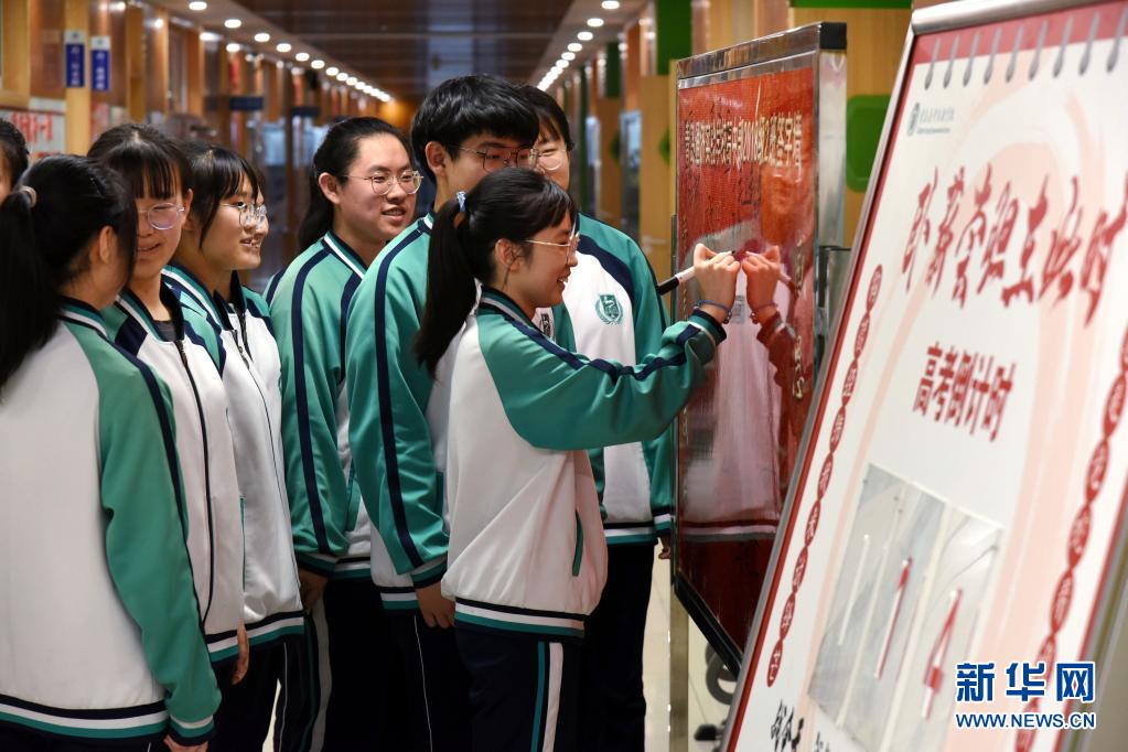 5月23日,青島通濟(jì)實(shí)驗(yàn)學(xué)校高三學(xué)生在簽名板上留言相互鼓勵。新華社記者 李紫恒 攝