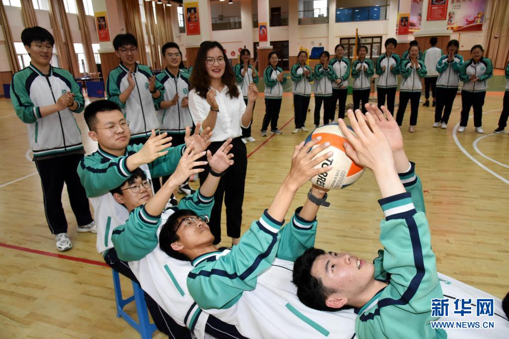 5月23日,青島通濟(jì)實(shí)驗(yàn)學(xué)校高三學(xué)生在進(jìn)行“激情節(jié)拍”游戲。新華社記者 李紫恒 攝