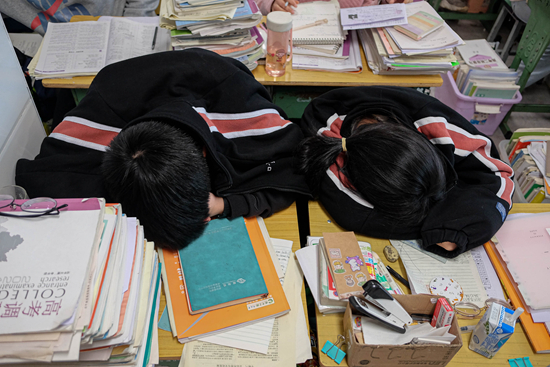 我的班級叫“線下”復(fù)讀班,大部分是去年高考沒有達(dá)到本科線的學(xué)生。比起考取名校,他們的復(fù)讀目標(biāo)更加現(xiàn)實(shí)。張偉去年高考成績比預(yù)期低了60分,他不服氣,選擇再考一年證明自己;陳鵬飛則想今年?duì)幦∧軌蚩忌媳究啤?/p>
