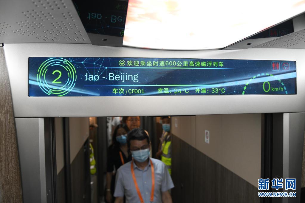 7月20日,參觀者在時速600公里高速磁浮列車內(nèi)體驗(yàn)。新華社記者 李紫恒 攝