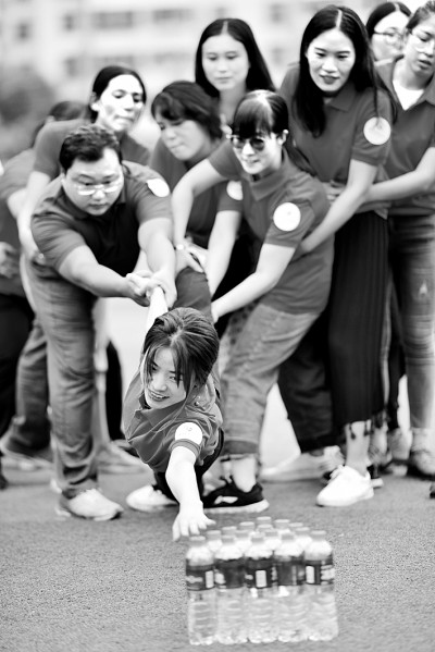 安徽省合肥市琥珀名城小學教師們參加特色拓展訓練,在團隊協(xié)作中凝聚智慧力量。熊偉攝/光明圖片