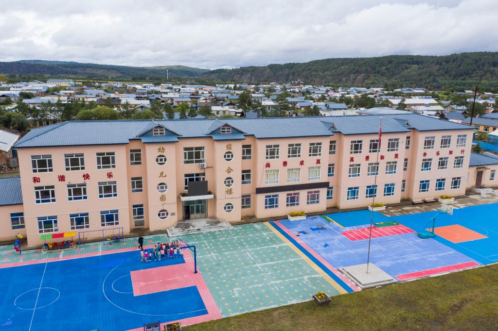 9月6日拍攝的北極鎮(zhèn)中心學(xué)校(無人機(jī)照片)。新華社記者謝劍飛 攝