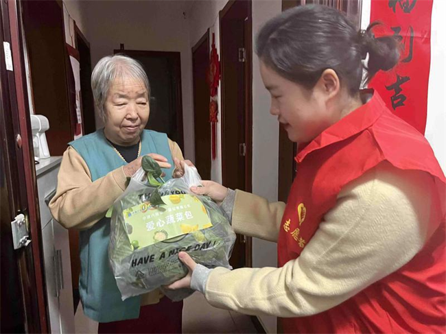 志愿者們來到田間助農(nóng)采摘菠菜和香菜,大家齊心協(xié)力、干勁十足,不一會(huì)兒一批新鮮蔬菜便裝袋完成。隨后志愿者們將“愛心蔬菜包”送往翠華南路社區(qū)困難老人手中,以實(shí)際行動(dòng)傳遞愛心,踐行央企責(zé)任。
