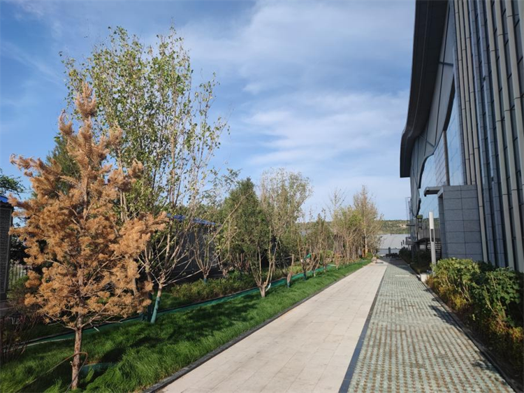 本次景觀提升工程主要對(duì)職工餐廳、文體中心北側(cè)的破損場(chǎng)地進(jìn)行了破除,對(duì)地平進(jìn)行修整后,重新種植了白皮松、叢生五角楓、白蠟、紅瑞木、水蠟等苗木。在留出人行通道的基礎(chǔ)上,設(shè)計(jì)了塑膠跑道,其余部分鋪設(shè)了草坪,并對(duì)區(qū)域圍墻進(jìn)行了修護(hù)??紤]到職工鍛煉休閑的實(shí)際需求,本次景觀提升工程還新安裝了一座公共廁所,設(shè)置了專門(mén)的吸煙區(qū)。