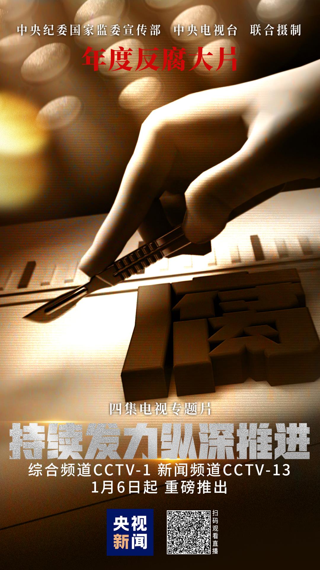 △由中央紀委國家監(jiān)委宣傳部與中央廣播電視總臺央視聯(lián)合攝制的年度反腐大片《持續(xù)發(fā)力縱深推進》
