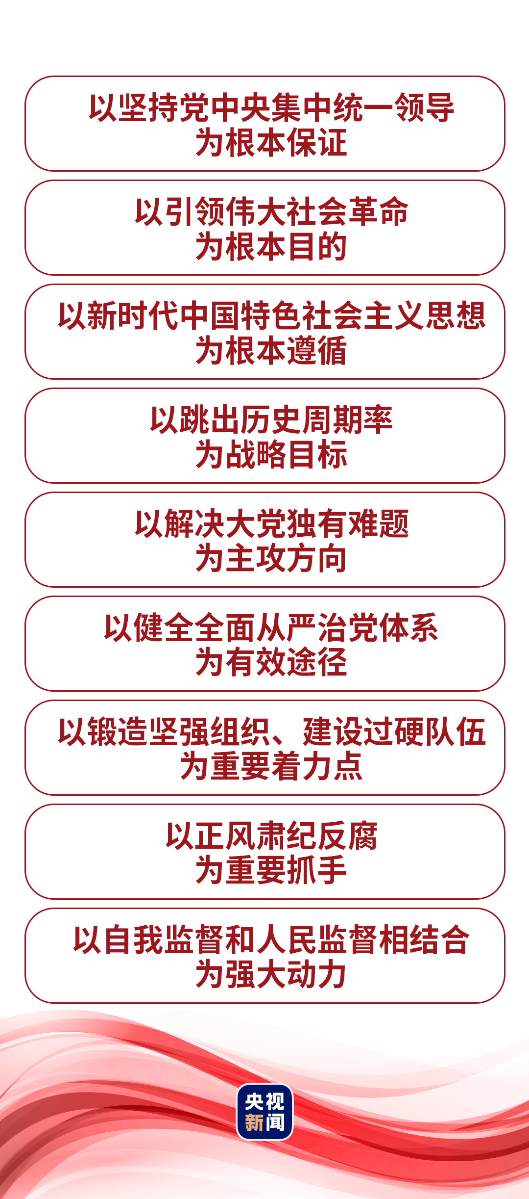 “黨的十八大以來,在推進全面從嚴治黨的偉大實踐中,我們不斷進行實踐探索和理論思考,在毛澤東同志當年給出‘讓人民來監(jiān)督政府’的第一個答案基礎上,給出了第二個答案,那就是不斷推進黨的自我革命。”2024年1月8日,在二十屆中央紀委三次全會上,習近平總書記發(fā)表重要講話,深刻闡述黨的自我革命的重要思想,明確提出“九個以”的實踐要求,為新時代新征程深入推進全面從嚴治黨、黨風廉政建設和反腐敗斗爭提供根本遵循。