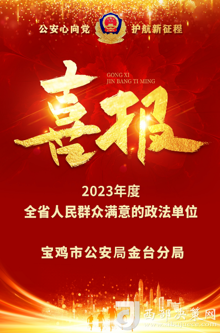 西部決策網(wǎng)訊(記者帥華鋒 通訊員 楊曉毅)1月21日,從省委政法工作會(huì)議上傳來(lái)喜訊,寶雞市金臺(tái)公安分局榮獲“全省人民群眾滿意的政法單位”,這是全市唯一獲此殊榮的縣(區(qū))級(jí)公安機(jī)關(guān)。
