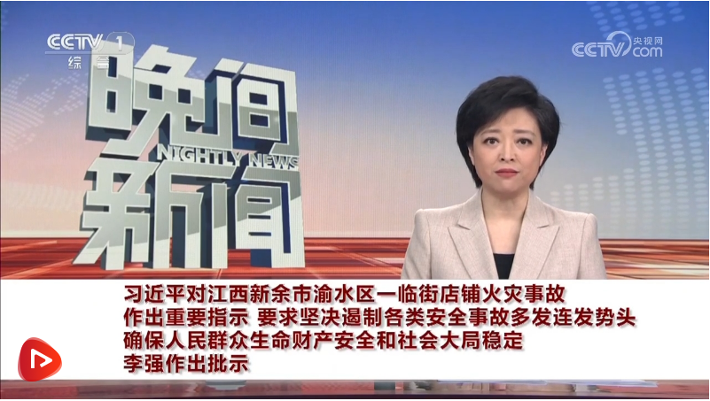 習(xí)近平對(duì)江西新余市渝水區(qū)一臨街店鋪火災(zāi)事故作出重要指示