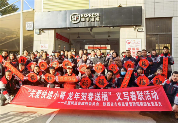 歡聲笑語(yǔ)辭舊歲,暖意融融迎新春。2024年1月23日,民盟省政府委員會(huì)攜手省市場(chǎng)監(jiān)管局離退處黨總支走進(jìn)高新科技八路順豐速運(yùn)營(yíng)業(yè)點(diǎn)開展“關(guān)愛快遞小哥 龍年賀春送福”義寫春聯(lián)活動(dòng),為快遞小哥送上文化年貨。