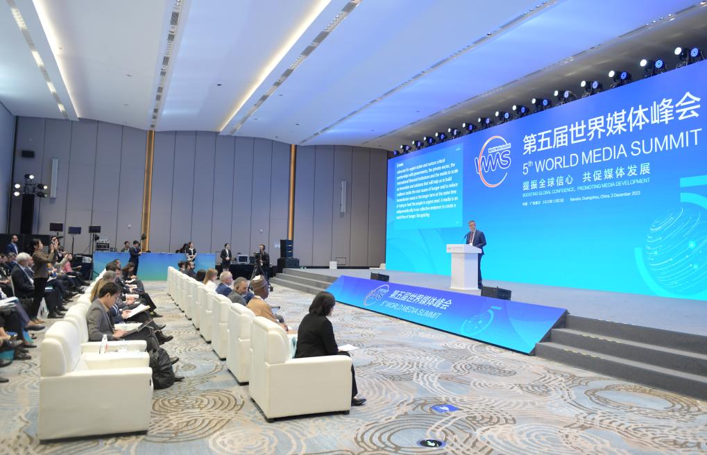 2023年12月4日,以“提振全球信心 共促媒體發(fā)展”為主題的第五屆世界媒體峰會在廣州南沙舉行平行分論壇活動,嘉賓在分論壇上發(fā)言。新華社記者 盧漢欣 攝
