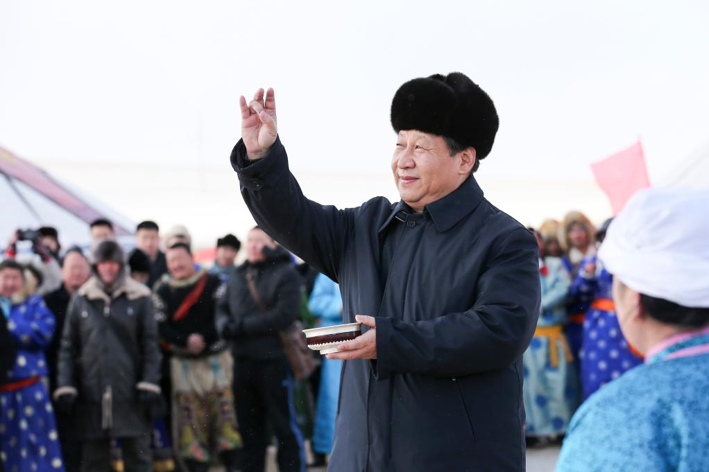 2014年1月,習(xí)近平總書記在內(nèi)蒙古調(diào)研看望慰問各族干部群眾。新華社記者 龐興雷 攝