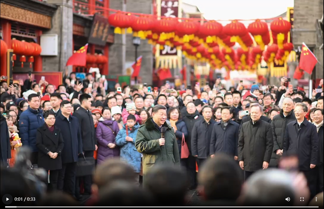 中華民族傳統(tǒng)節(jié)日春節(jié)即將到來之際,中共中央總書記、國家主席、中央軍委主席習(xí)近平來到天津,看望慰問基層干部群眾,向全國各族人民和香港同胞、澳門同胞、臺灣同胞、海外僑胞拜年!