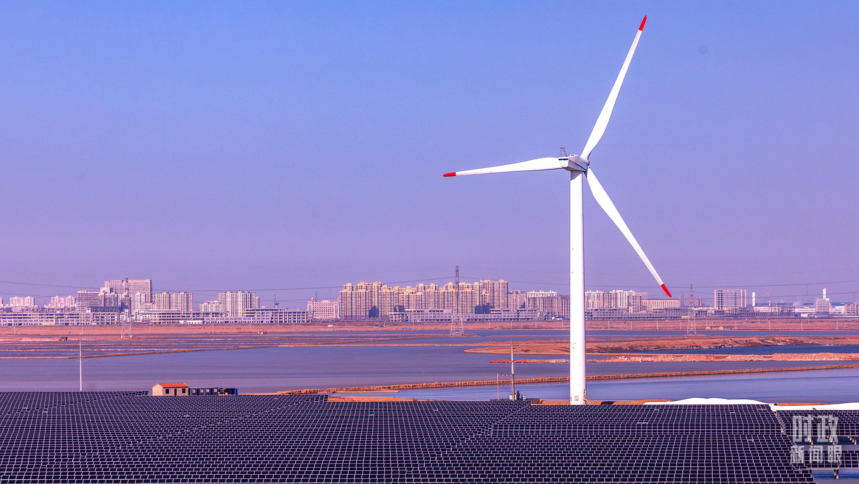 △天津市濱海新區(qū),風(fēng)電機(jī)矗立渤海灣。(圖/視覺中國(guó))