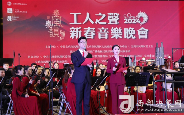 西部決策網(wǎng)訊(記者劉玉 韓宗憲 通訊員 任紅兵 楊媛 李一平 梁軍 撒開紅)龍吟國瑞強(qiáng)音振,鳳舞雍城駿業(yè)騰。2月5日晚,由寶雞市鳳翔區(qū)委和區(qū)政府主辦,區(qū)總工會承辦的鳳翔區(qū)工人之聲——“秦風(fēng)秦韻”2024年新春音樂晚會精彩上演,來自陜西省廣播電視民族樂團(tuán)和陜西民族樂團(tuán)的名家新秀齊聚一堂,為廣大觀眾呈獻(xiàn)了一場喜慶歡騰、歡樂祥和的文藝大餐和視聽盛宴。