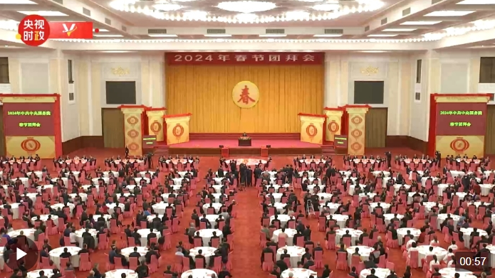 中共中央、國務(wù)院8日上午在人民大會堂舉行2024年春節(jié)團拜會。中共中央總書記、國家主席、中央軍委主席習(xí)近平發(fā)表講話,代表黨中央和國務(wù)院,向全國各族人民,向香港特別行政區(qū)同胞、澳門特別行政區(qū)同胞、臺灣同胞和海外僑胞拜年。