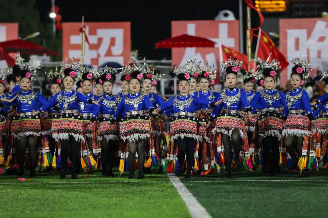△2024年2月3日,2024年全國(guó)“村晚”示范展示活動(dòng)暨貴州“村超村晚”系列活動(dòng)之一的民族文化展演,在榕江縣“村超”足球場(chǎng)舉行。