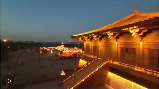 春節(jié)期間,西安各景區(qū)燈會夢幻迷人眼,夜色中俯瞰流光溢彩,恍若再回長安。大唐芙蓉園“新春大潮會”中絕美花燈形色各異,龍鳳花燈栩栩如生。鳳凰池上一組“龍游天空”燈組交織出璀璨的水上繁星,好似闖入東海龍宮。一步一景,滿園燈火輝煌,美不勝收。大明宮“上元唐宮燈會”20米高巨型花燈極具視覺張力,氛圍感拉滿,帶給市民游客“扶搖直上九萬里”長安花燈的限定浪漫。