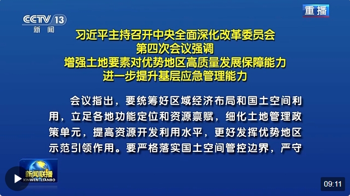 中共中央總書記、國家主席、中央軍委主席、中央全面深化改革委員會(huì)主任習(xí)近平2月19日下午主持召開中央全面深化改革委員會(huì)第四次會(huì)議,審議通過了《關(guān)于改革土地管理制度增強(qiáng)對(duì)優(yōu)勢(shì)地區(qū)高質(zhì)量發(fā)展保障能力的意見》、《關(guān)于促進(jìn)經(jīng)濟(jì)社會(huì)發(fā)展全面綠色轉(zhuǎn)型的意見》、《關(guān)于進(jìn)一步提升基層應(yīng)急管理能力的意見》、《關(guān)于加快形成支持全面創(chuàng)新的基礎(chǔ)制度的意見》、《中央全面深化改革委員會(huì)2023年工作總結(jié)報(bào)告》、《中央全面深化改革委員會(huì)2024年工作要點(diǎn)》。