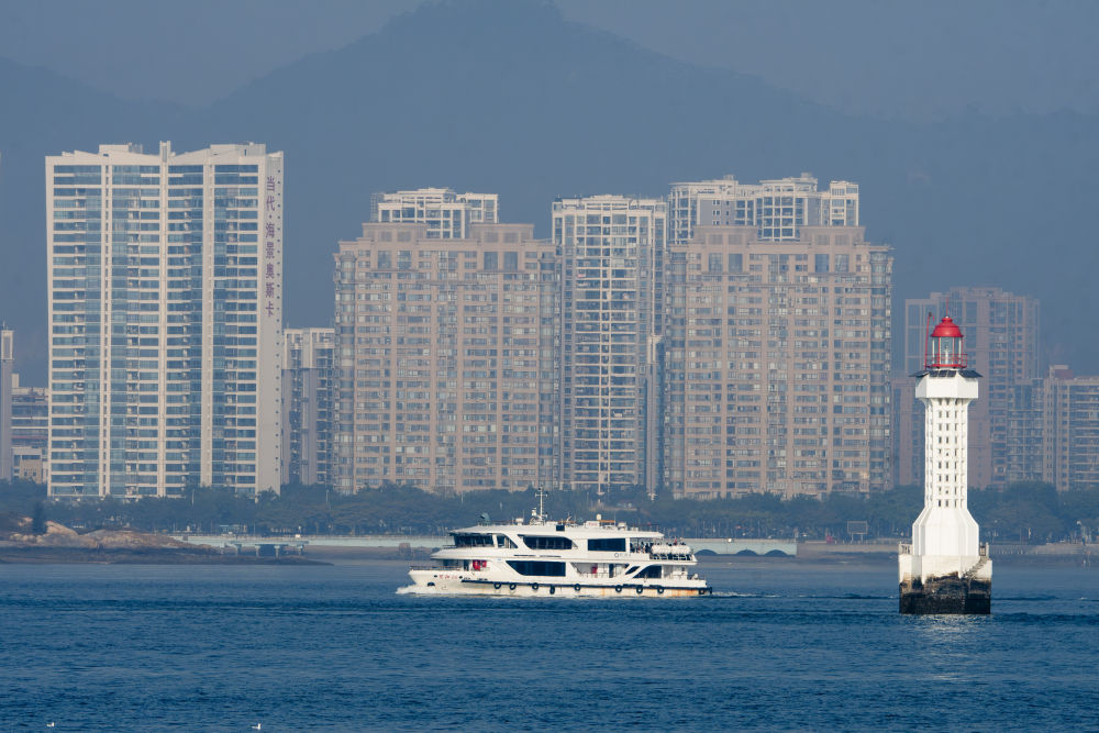 2024年1月5日,一艘游輪在廈門(mén)海灣公園附近的海面上穿行。新華社記者 魏培全 攝