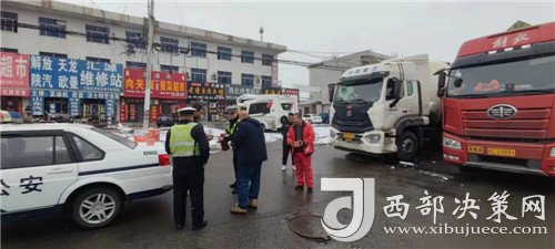 2月23日,潼關(guān)縣交警大隊秦東中隊中隊長梁寬鋒組織中隊民警為滯留的司機師傅送去火腿腸、泡面、熱水等物資,給司機和乘客倒上熱水送溫暖,并叮囑他們耐心等待。