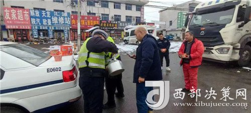 “雪警”送情,潼關(guān)交警為滯留車輛司機送上“暖心泡面”