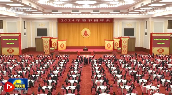 中共中央、國務(wù)院8日上午在人民大會堂舉行2024年春節(jié)團(tuán)拜會。中共中央總書記、國家主席、中央軍委主席習(xí)近平發(fā)表講話,代表黨中央和國務(wù)院,向全國各族人民,向香港特別行政區(qū)同胞、澳門特別行政區(qū)同胞、臺灣同胞和海外僑胞拜年。