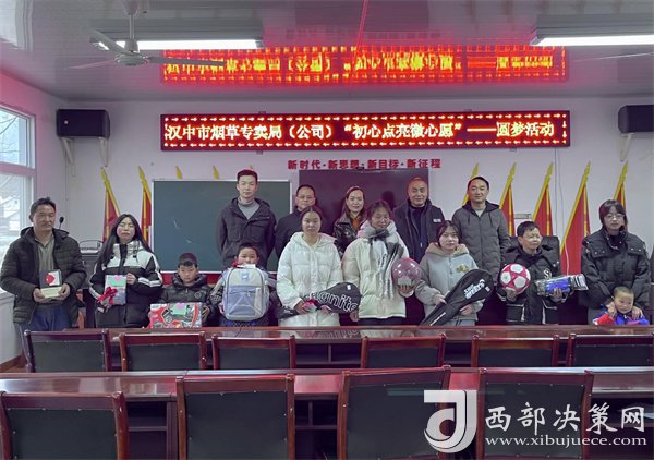 鄉(xiāng)村振興工作開展以來,漢中市煙草專賣局(公司)切實扛牢企業(yè)政治責任和擔當,情系鄉(xiāng)村教育,聚焦教育幫扶賦能鄉(xiāng)村振興,在幫扶村開展了一系列愛心助學、捐資捐贈活動,做了許多“暖童心、助成長”的好事實事。下一步,市局(公司)將繼續(xù)發(fā)揮行業(yè)優(yōu)勢,從幫扶村實際和青少年兒童需求出發(fā),廣泛動員市局機關(guān)及社會各界愛心人士積極參與鄉(xiāng)村少年兒童關(guān)心關(guān)愛及幫扶服務工作,建立長效機制,凝聚鄉(xiāng)村教育發(fā)展合力,讓孩子們在關(guān)愛保護下茁壯成長,切實以鄉(xiāng)村教育振興推動鄉(xiāng)村全面振興。(供稿:趙泓陽)