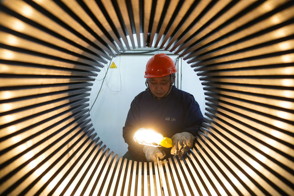 2023年2月16日,工人在江蘇省南通市通州區(qū)興仁鎮(zhèn)轄區(qū)的專精特新“小巨人”企業(yè)南通通達(dá)矽鋼沖壓科技有限公司生產(chǎn)車間忙碌。2023年,江蘇省科技型中小企業(yè)達(dá)9.4萬家,新獲評國家專精特新“小巨人”企業(yè)795家,數(shù)量均居全國第一。